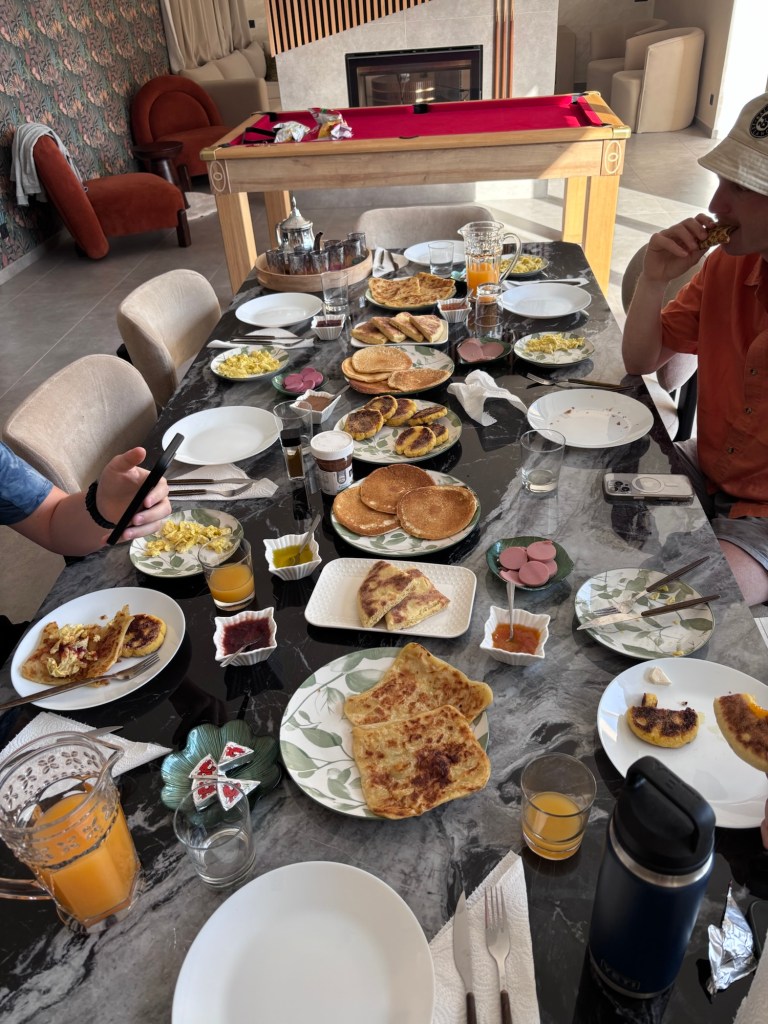 Our plane landed around 11 pm Sunday night in Marrakech. Our drivers picked us up from the airport and took us to get something to eat. We stopped at a little hole in the wall restaurant that our driver said he liked, and it might have been one of the best philly cheesesteak sandwiches I’ve ever had. It definitely hit the spot after a long day of traveling. Our air bnb was around 30 minutes from the center of Marrakech. Once we arrived to our place we were stunned at how nice it was for the price we paid.
