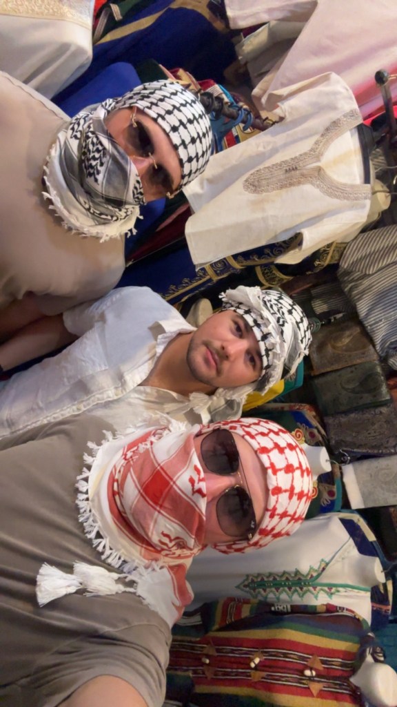 We walked around the Souks for a couple hours. We managed to get lost multiple times which is very easy to do. Towards the end of the day we bought head scarves and wore them to dinner. We also bought linen outfits to go with the headscarves.