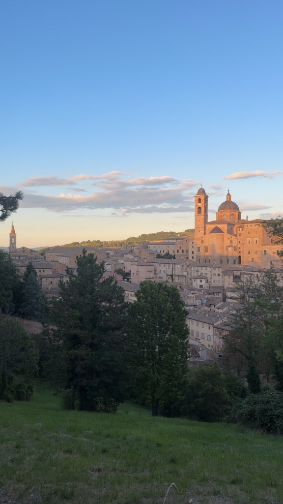 To start off, after I posted my last blog on Sunday we went on a hike to the top of Urbino where an old fort is located. It’s the prettiest view here. On our walk, we saw a wild pig and stopped to video it. As it kept walking uphill towards us, we just stood there waiting on it to get closer. Long story short, we let it get too close and it started chasing us. It was a massive pig and he still got pretty close to us. It was definitely the highlight of our day! The hike to the top made it worth it. He started chasing us right after I took this video.